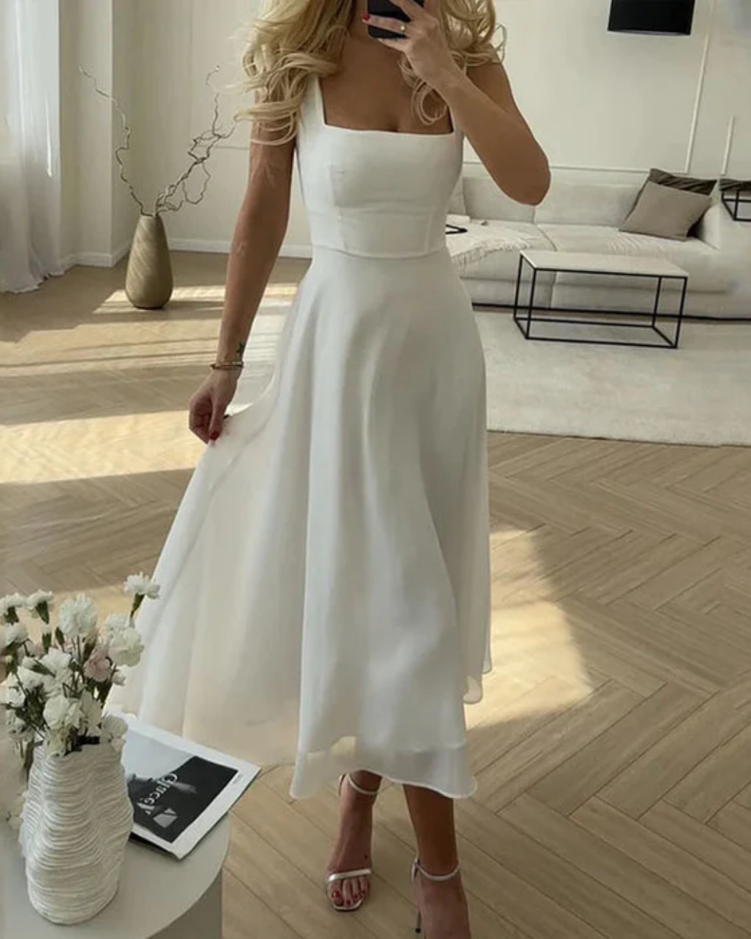Damen Hochzeitsgast Midikleid mit eckigem Ausschnitt